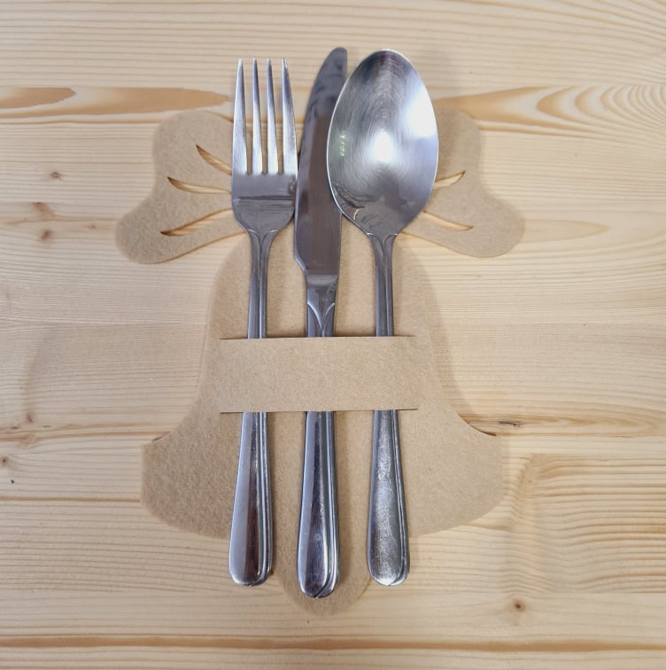 Hier bieten wir euch unsere Bestecktasche “Glocke” an. Darin könnt Ihr zu euren Feierlichkeiten, das Besteck sowie Serviette verstauen. So macht Ihr eure Feier zu etwas besonderen.