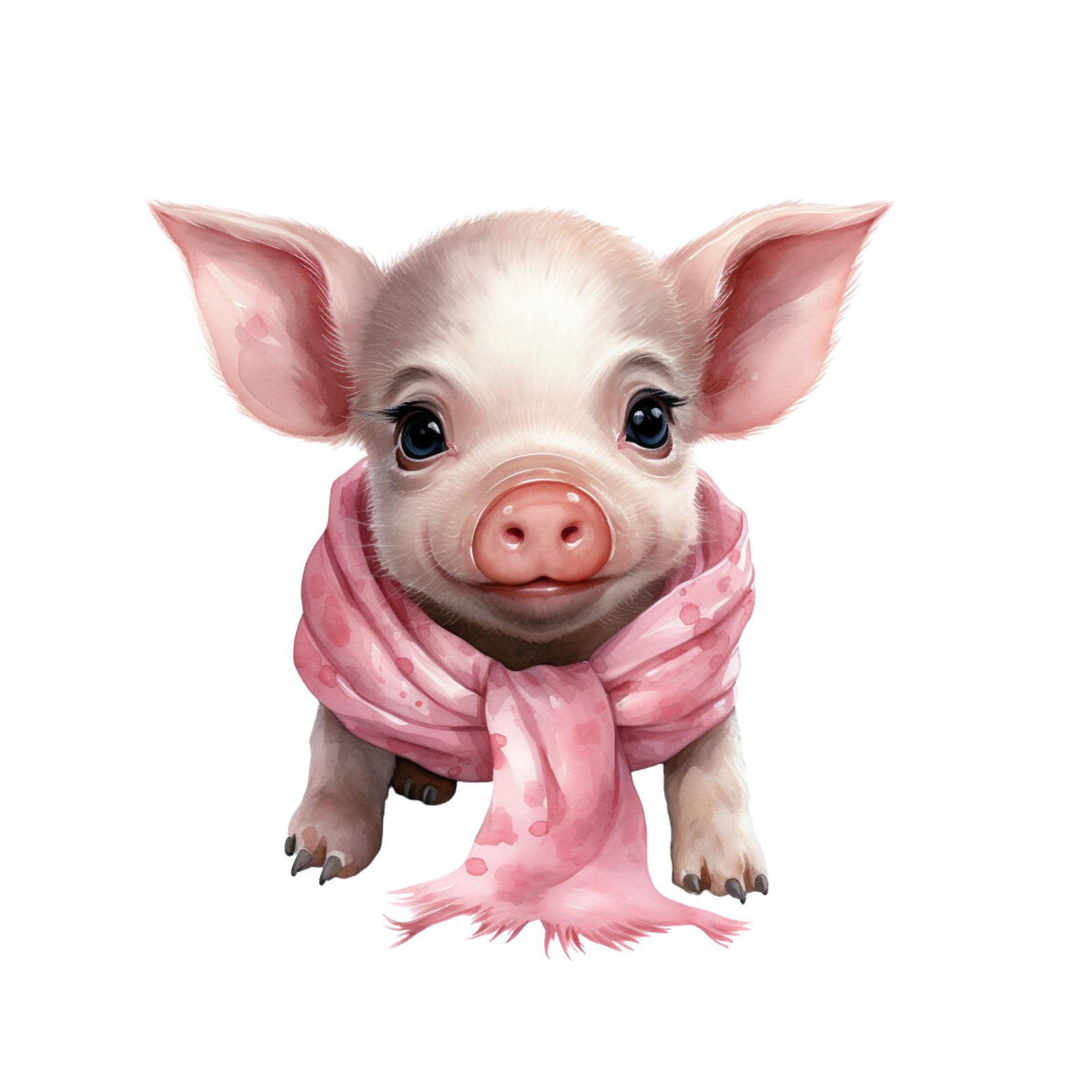 Bügelbild – Babyschwein – Rosa Schal
