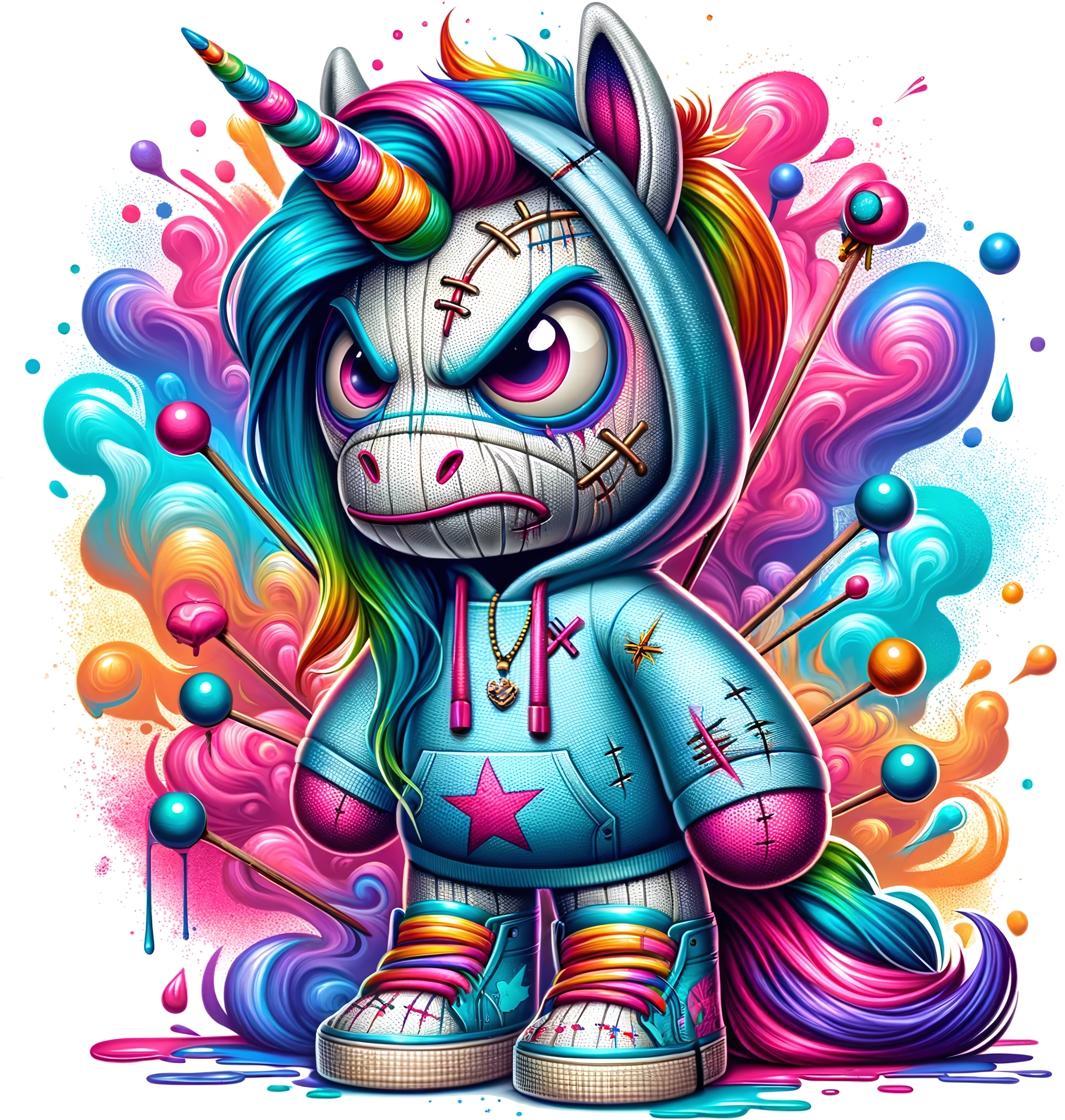 Bügelbild -Böses Einhorn – Melting – Stecknadeln