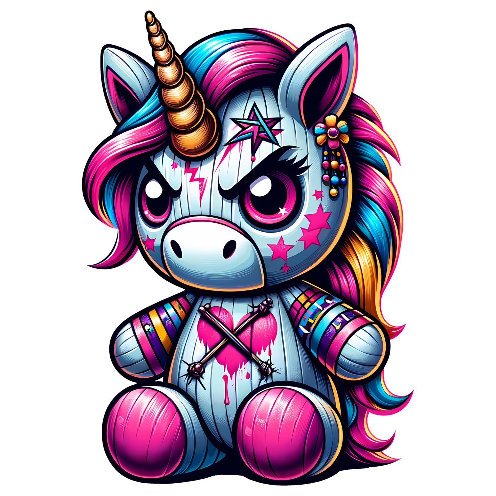 Bügelbild -Böses Einhorn – Sitzend – Voodoo