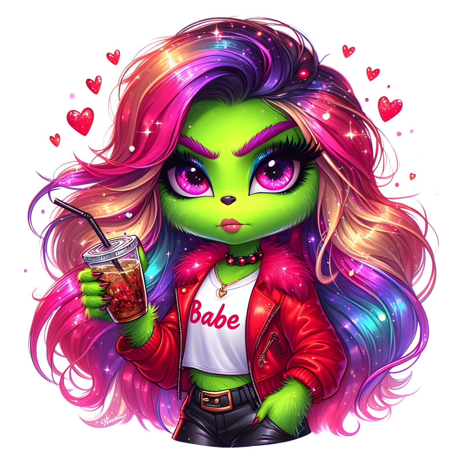 Name: Bügelbild – grüne Frau – Babe – Lila Augenbraun