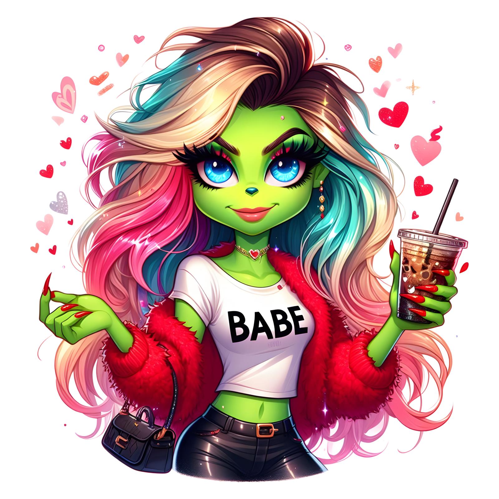 Name: Bügelbild – grüne Frau – Babe Schwarz