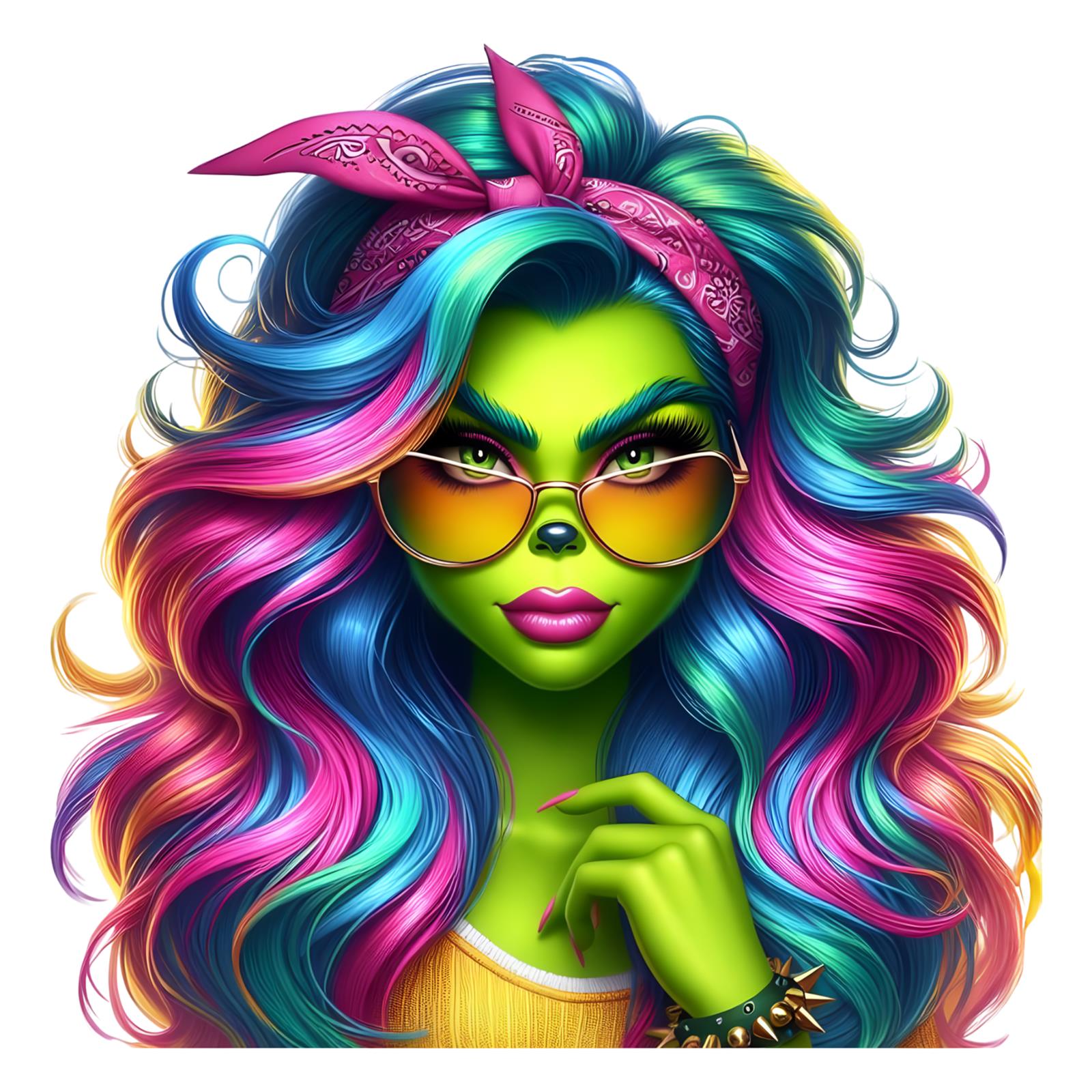 Name: Bügelbild – grüne Frau – Haarband Rosa