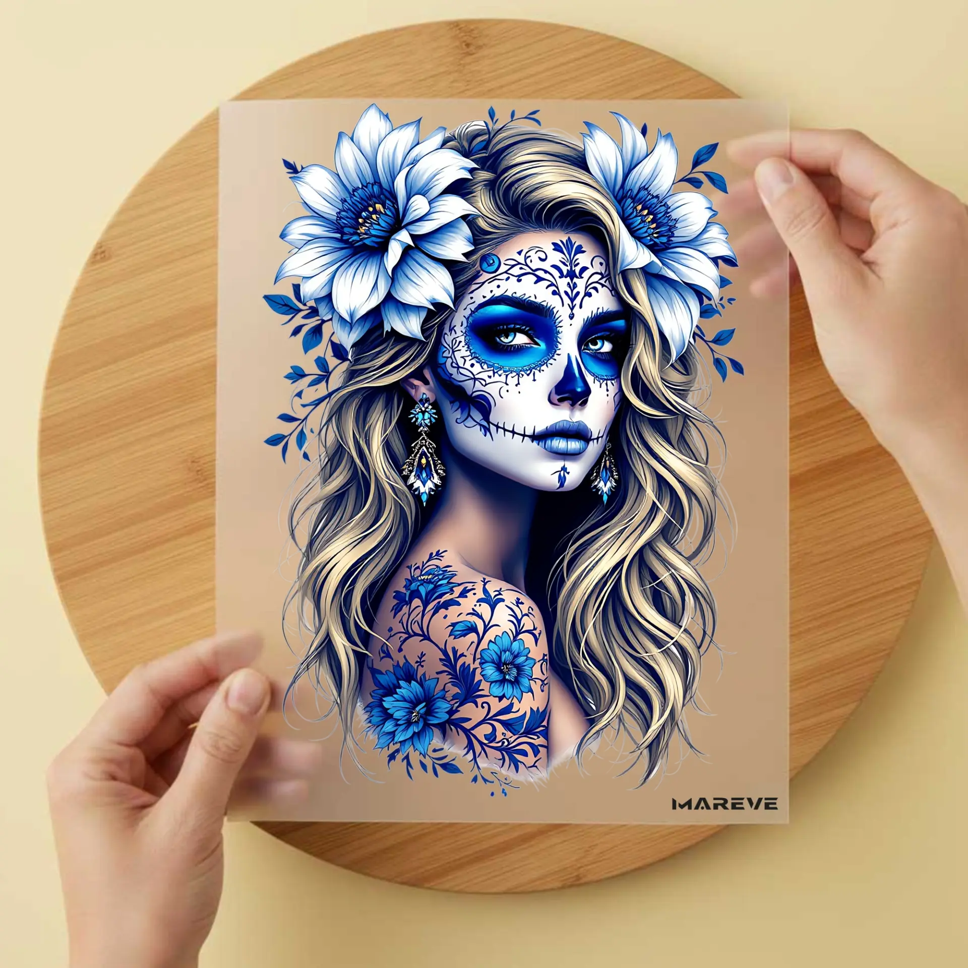 Seien Sie die erste Kundenmeinung "Bügelbild/Sticker/Sticker – La Catrina – Blau/Weiß"