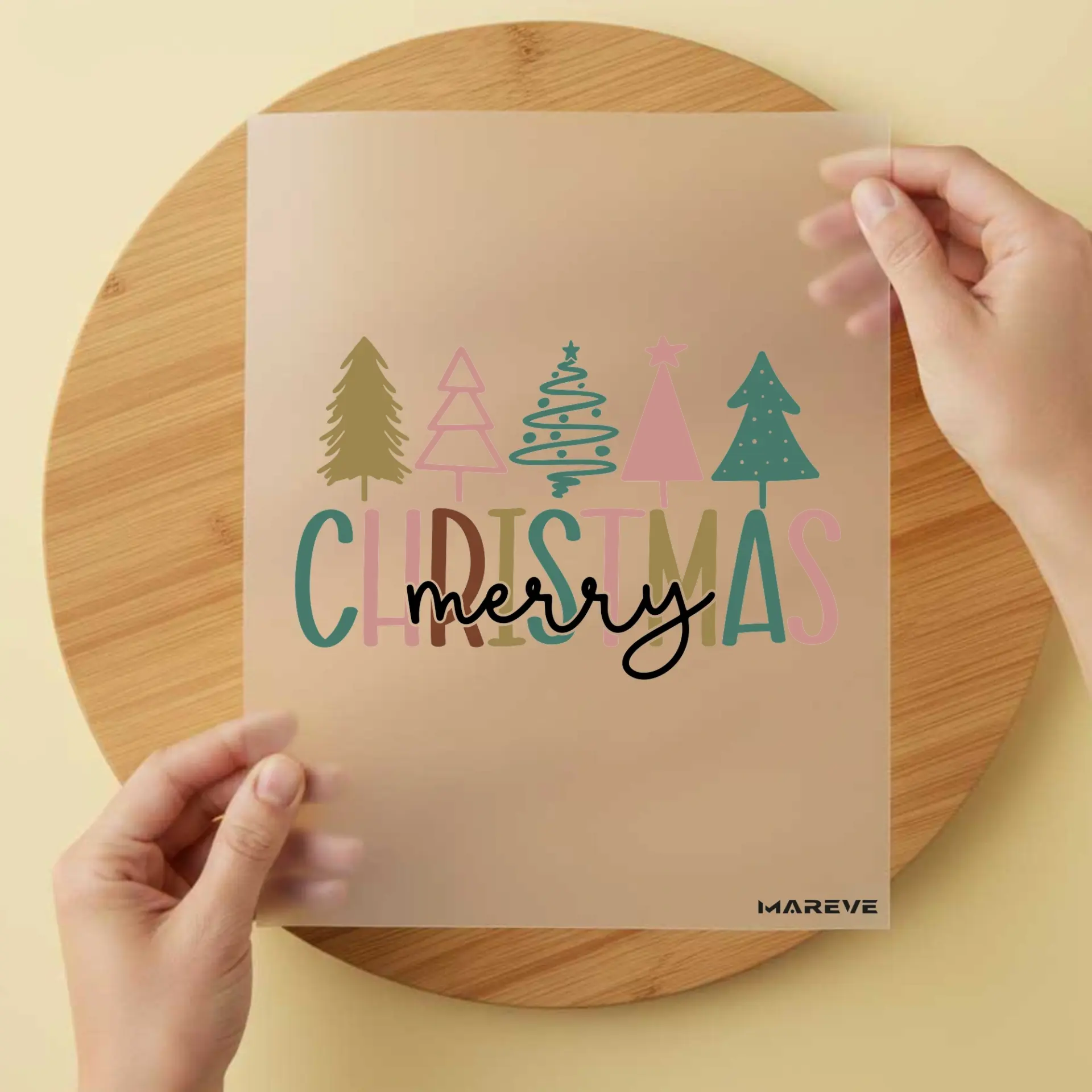 Seien Sie die erste Kundenmeinung "Bügelbild/Sticker – Text – Merry Christmas – Bäume"