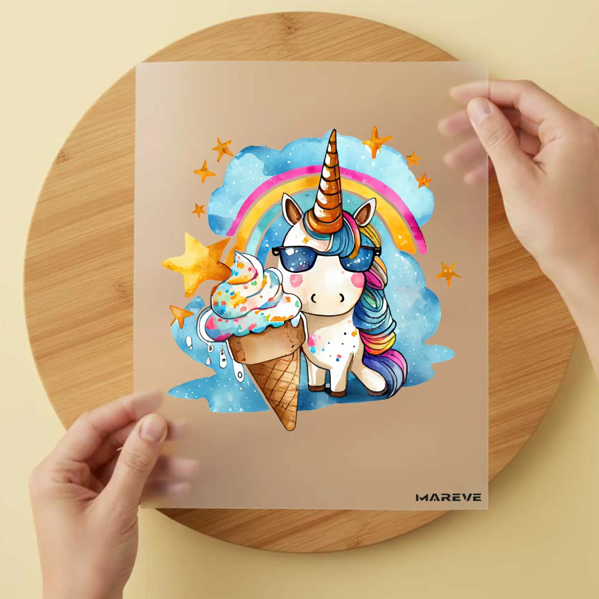 Seien Sie die erste Kundenmeinung "Bügelbild/Sticker – Watercolour – Einhorn – Eis"