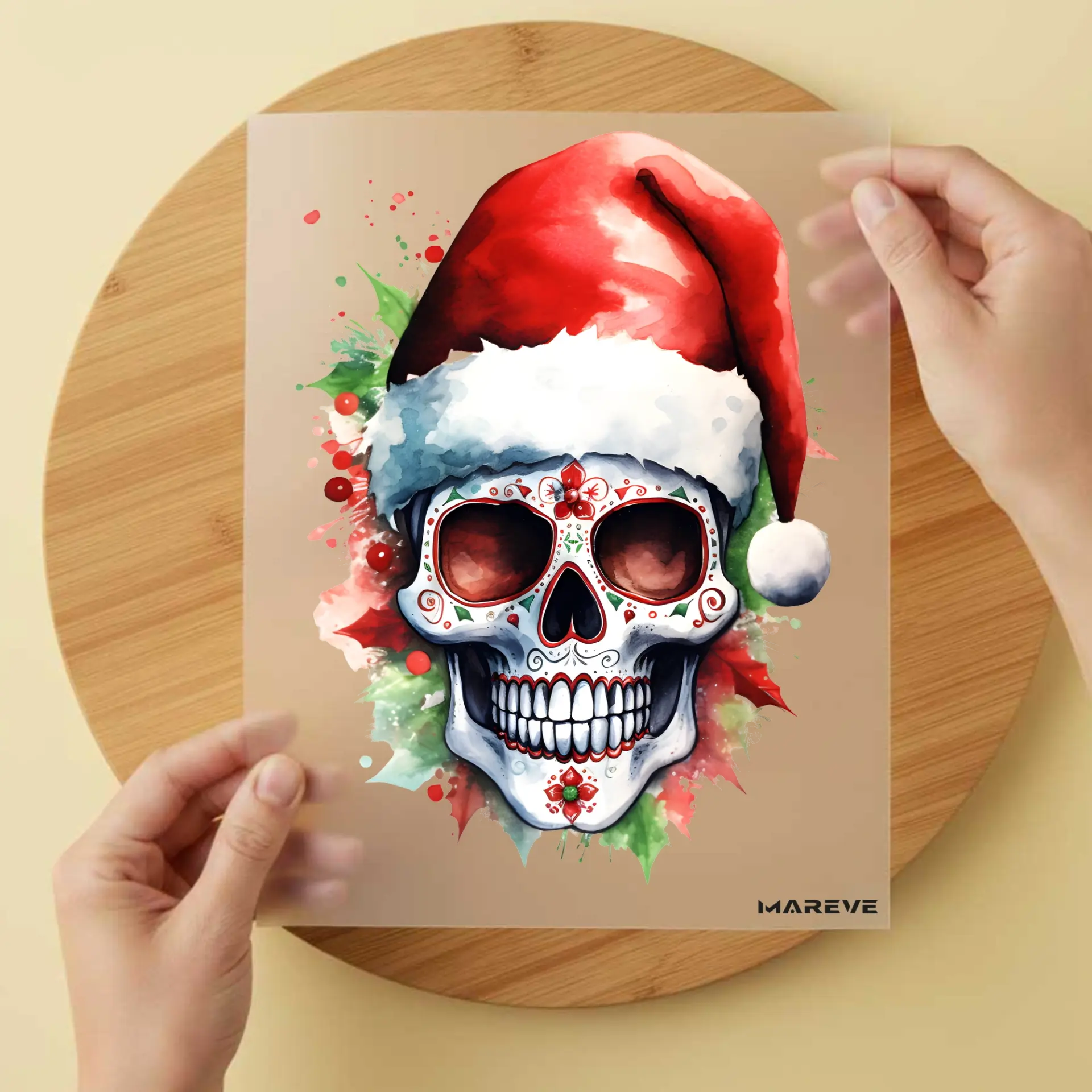 Seien Sie die erste Kundenmeinung "Bügelbild/Sticker – Watercolour – Totenkopf – Weihnachten"