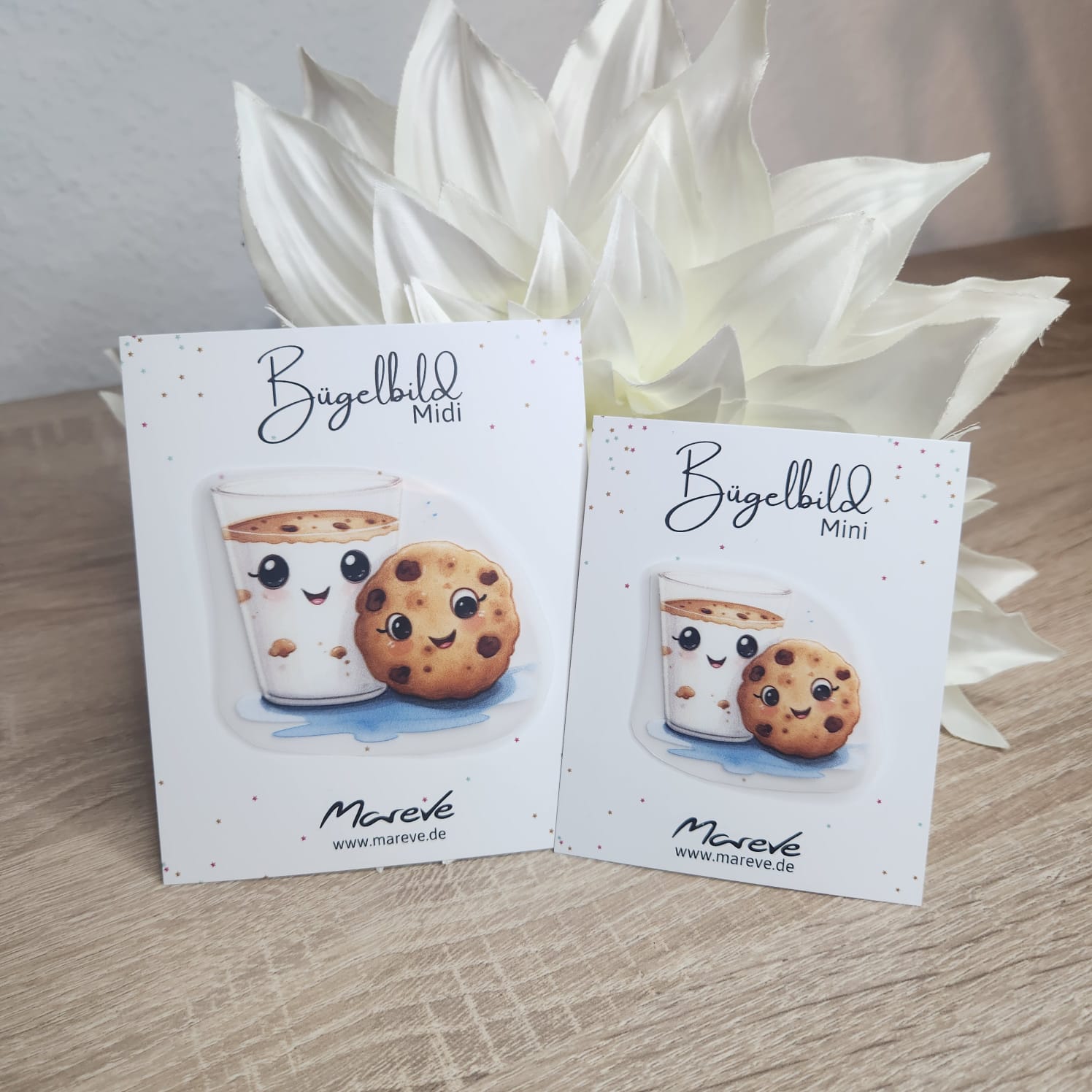 Midi/Mini Bügelbilder Designkarte – Milch & Cookie